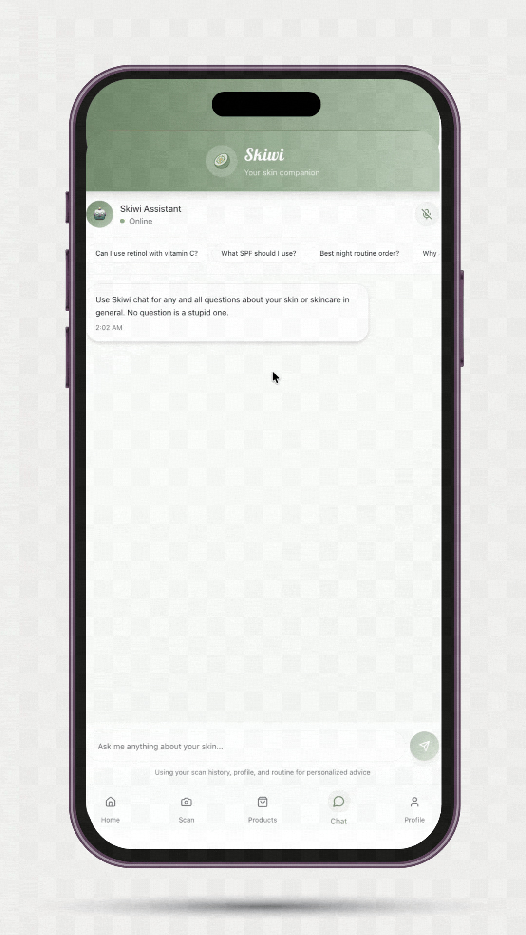 AI that scans your skin, understands ingredients, guides your routine, and tracks real progress, all in one place.